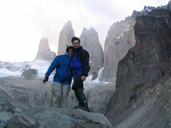 We met on the first day of graduate school at the University of Washington. We were assigned to the same orientation group. Apparently, Griff liked Arti after this first meeting, and so he decided to play "hard to get" for the next few years. After some initial interest in Griff, Arti decided he was "just not that into her". So several years later, after Arti had transferred to Harvard and moved to Cambridge, she was a bit surprised when he expressed interest in joining her on a trip to Patagonia. But it was Patagonia after all. Arti, Griff, and Arti's friend Dominic spent a week backpacking in the Torres del Paine National Park. During this time, Arti and Griff got to know each other better, but Arti, at least, suspected nothing else. Finally, on the last day of the vacation, Griff confessed to having had a secret crush on her for the past four years. Arti decided that when someone literally follows you to the end of the Earth he probably deserves at least a chance...and four years later, here we are.